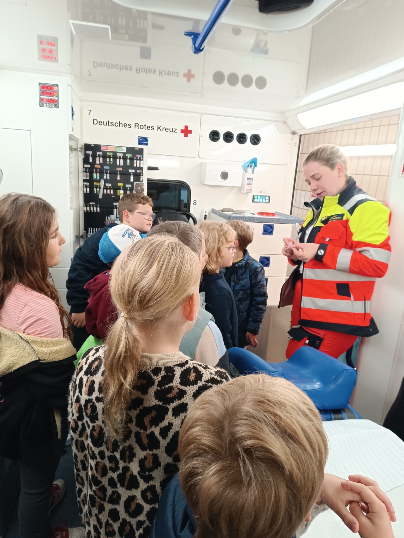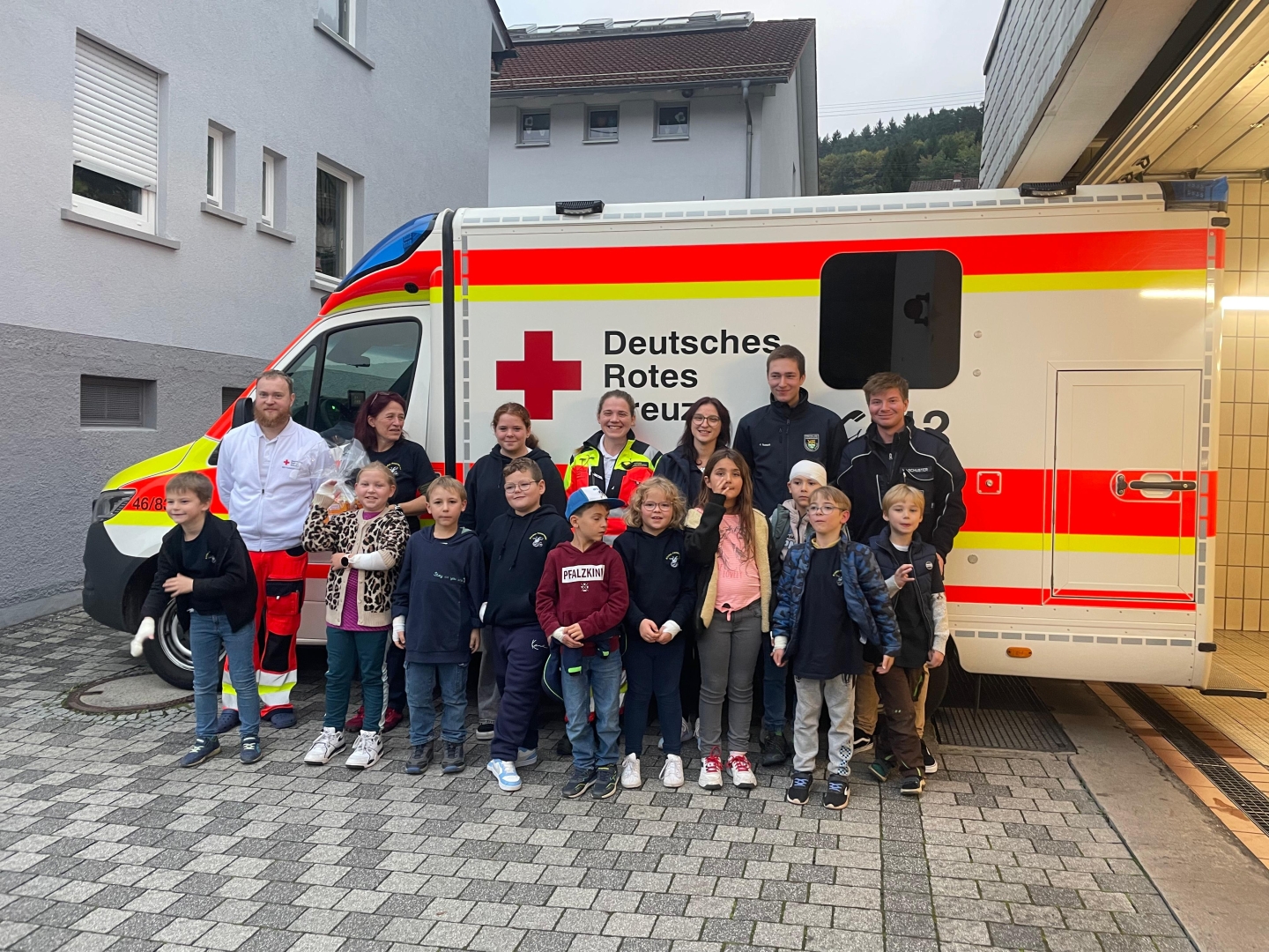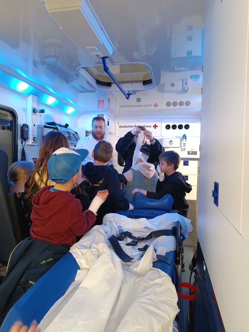 Kategorien:Allgemein | Veröffentlicht am: Samstag,11.10.2025Die Kinderfeuerwehr Lambrecht machte in ihrer Gruppenstunde am Freitag, den10.10.2025 einen spannenden Ausflug zur Rettungswache in Lambrecht. Tatkräftige Unterstützung für diesen Ausflug fand sich auch aus Reihen der Betreuer der Jugendfeuerwehr Lambrecht. Nach einem kurzen Rundgang durch die Rettungswache stellten sich Notfallsanitäterin Lara Nowotny und Rettungssanitäter Denys Khomenko bei der Vorführung der auf der Wache stationierten Rettungsmittel den unzähligen Fragen der kleinen Besucher. Verbände wurden angelegt, Ausrüstung kritisch begutachtet und eigene, bisherige Erfahrungen lautstark mitgeteilt. Als Dank für ihren ganzjährigen Einsatz und ihre Bereitschaft, den aufstrebenden Nachwuchskräften der Feuerwehr Einblicke in ihren Beruf und ihr Arbeitsumfeld zu ermöglichten, wurden am Ende der gelungenen Veranstaltung ein Präsent aus Nervennahrung in Form von Süßigkeiten und für jeden Mitarbeiter der Wache ein selbst gebastelter Schutzengel mit Wünschen einer immer gesunden Rückkehr überreicht.