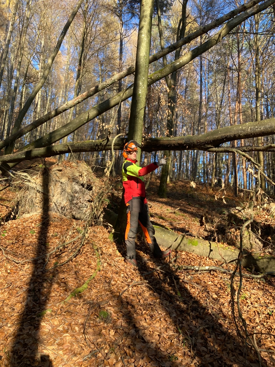 Der Feuerwehr Esthal wurde von Förster Dirk Neumann vom Forstrevier Morschbach und von Christian Theobald vom Forstgut Sattelmühle ein Übungsgelände zur Verfügung gestellt. Unter fachlicher Anleitung von Forstwirt Lukas Janz wurde gezeigt, wo man in Extremsituationen wie Wind- und Schneebruch am besten mit der Säge ansetzt, wie man Druckseite und Zugseite und anderes erkennt. Geübt wurde auch der Einsatz des Mehrzweckzuges in Verbindung mit Forstarbeiten. Durch diese Übung sollen die bereits vorhandenen Kenntnisse im sicheren Umgang mit der Motorkettensäge für den Einsatzfall gefestigt werden.