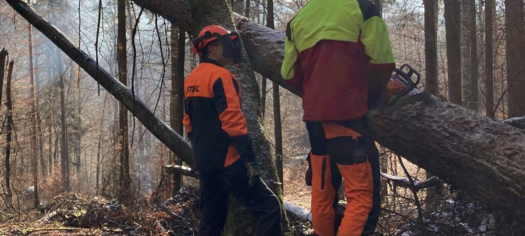 Sicheres Arbeiten mit der Motorkettensäge geübt