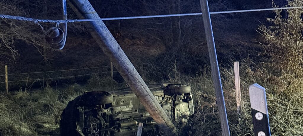 Beim Unfall wurde ein Strommast beschädigt, was einen Stromausfall der umliegenden Ortschaften zufolge hatte.
