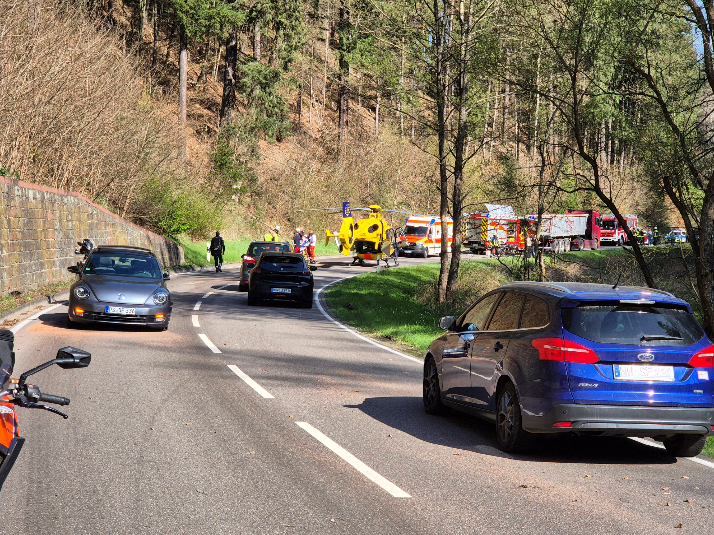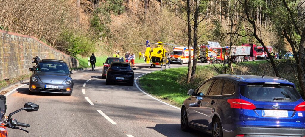 Die Feuerwehren Elmstein, Iggelbach und Lambrecht wurden am 15.04.2026 um 15:54 Uhr zu einem schweren Verkehrsunfall auf die L499 von Elmstein in Fahrtrichtung Helmbach alarmiert.